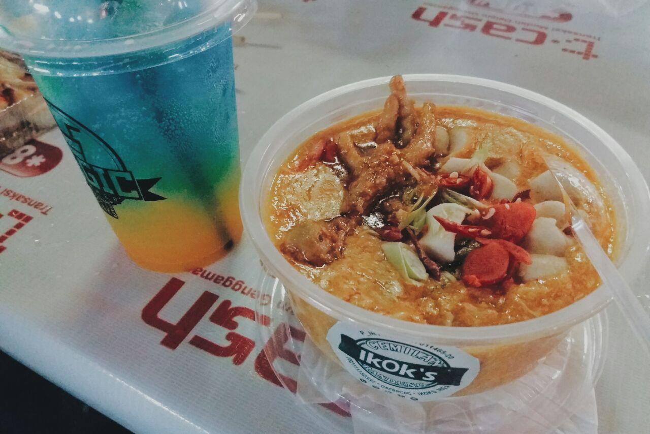 Sama kayak Ikok's ini, kayaknya udah sering ada di setiap food festival tapi gak pernah tertarik. Nah kemarin karena udah tau rasa seblak jadi iseng nyobain. Ada seblak ceker sama seblak basah. Aku suka ceker sih cuma ya makannya agak ribet. Aku gak bisa kayak orang yang asal makan aja. Kalo maka ceker, wajib hukumnya buat menggerogoti sampe tulang-tulang rawannya. Nah aku pesen deh seblak basah. Isinya cuma kerupuk, pentol (bakso ikan), sama sosis. Aku minta tambah ceker yang cuma dapat satu dan harganya jadi 20.000. Beda 10.000 sama seblak di pramuka yang isinya macam-macam.